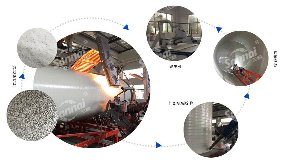 采用擠出纏繞無焊縫機組,自動化焊接技術(shù)及生產(chǎn)裝備